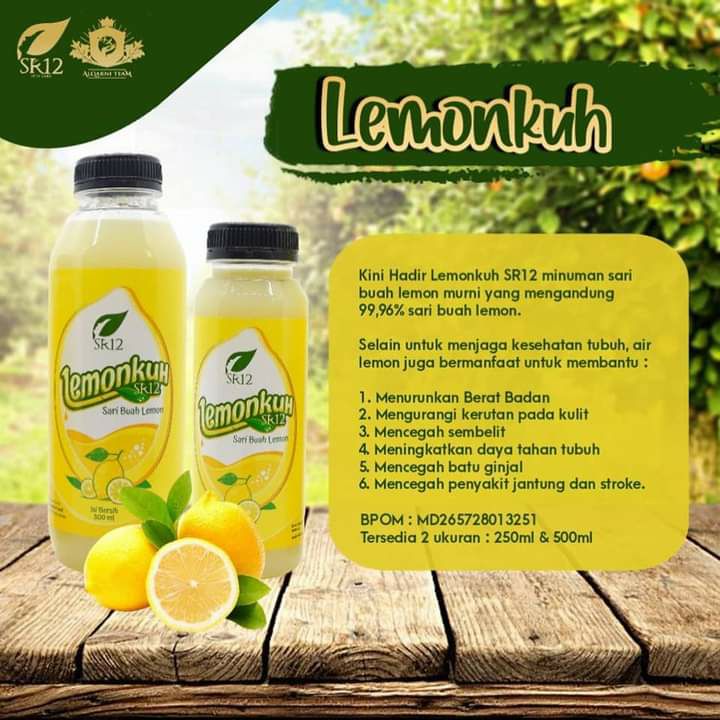 minuman sari buah lemon murni yang mengandung 99,96% sari buah lemon.
